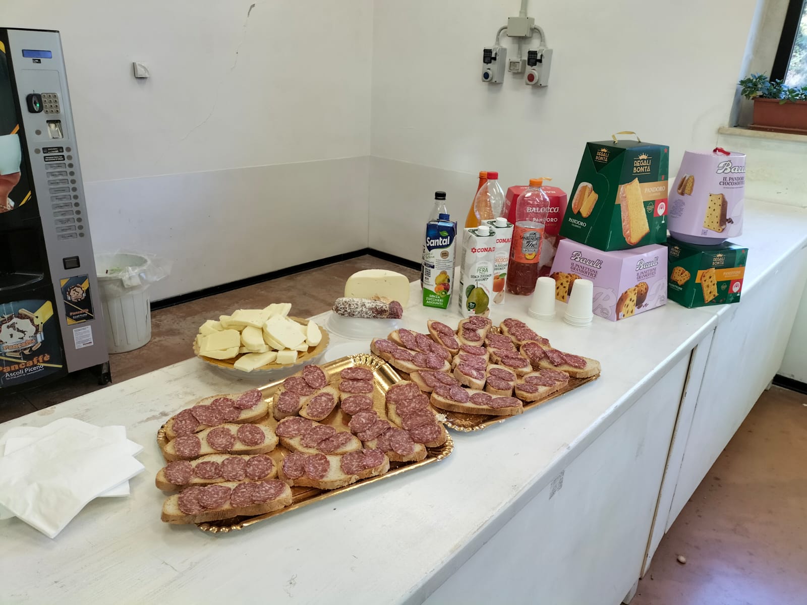 Questa mattina abbiamo celebrato la nostra tradizionale Colazione di Natale insieme ai nostri ragazzi: salame e formaggio gentilmente offerti da Sabelli, accompagnati da pandori, panettoni e dolci donati dai nostri preziosi clienti.